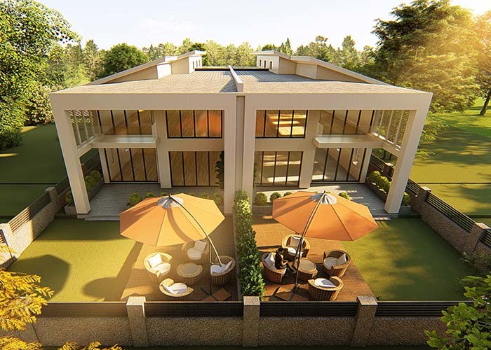 लाइट स्टील फ्रेमिंग या पैनलयुक्त सिस्टम के साथ प्रीफैब्रिकेटेड लक्जरी डुप्लेक्स विला