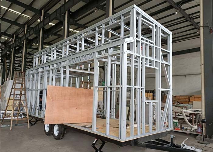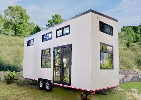 अल्यू.कैस्मेंट दरवाजा एयर कंडीशनिंग वैकल्पिक के साथ पहियों पर पूर्वनिर्मित छोटे घर