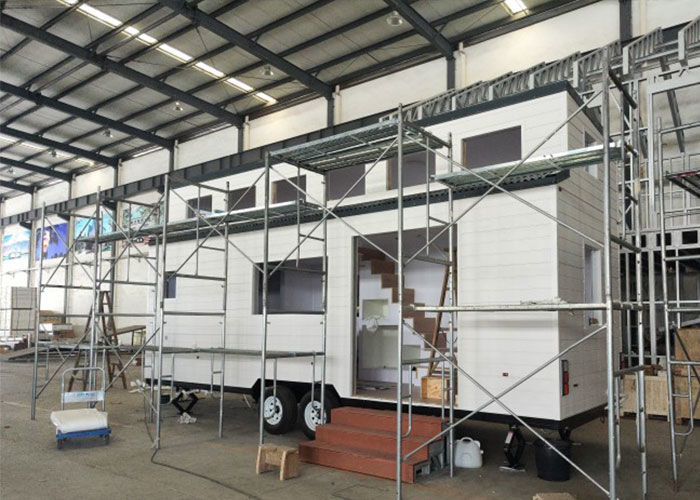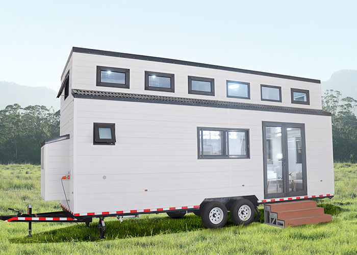 प्रीफैब टिनी हाउस ऑन व्हील्स | सौर पैनलों के साथ प्रीफैब होम और शिप करने के लिए तैयार