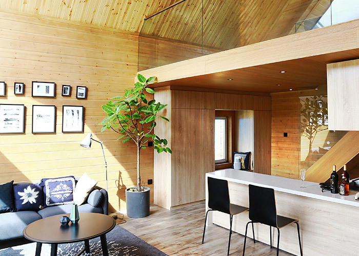 एम्स्टर्डम हाउस एक खूबसूरती से डिज़ाइन किया गया दो मंजिला लकड़ी का बंगला है जो आधुनिक जीवन को प्राकृतिक आकर्षण के साथ जोड़ता है। इसकी सबसे उल्लेखनीय विशेषता विशाल फर्श से छत तक के कांच की खिड़कियां हैं, जो दिन भर अंदरूनी हिस्सों में प्राकृतिक रोशनी भर देती हैं और बाहर के साथ एक सहज संबंध बनाती हैं।