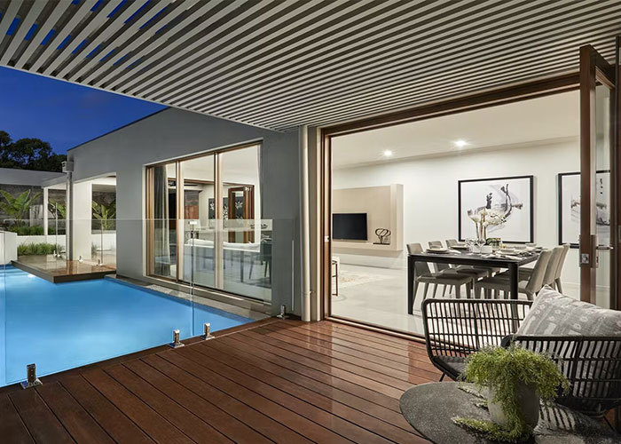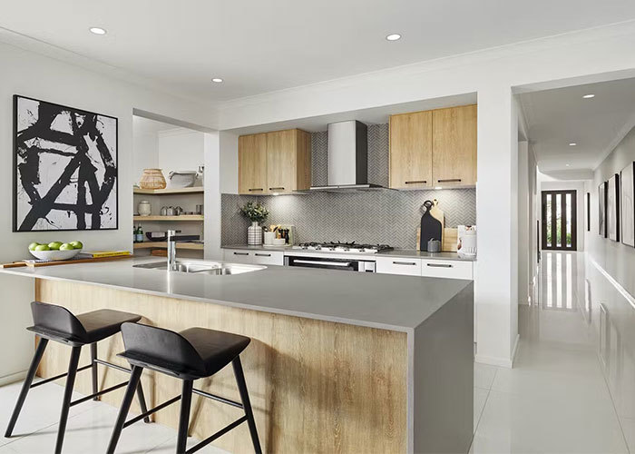 घर का केंद्र एक खुले रसोईघर में खुलता है जो भोजन क्षेत्र से जुड़ा होता है। यह स्थान दैनिक खाना पकाने और साझा भोजन के लिए डिज़ाइन किया गया है, जिसमें एक आसान प्रवाह है जो रोजमर्रा की दिनचर्या और दोस्तों या परिवार के साथ समारोहों दोनों के लिए उपयुक्त है। भोजन क्षेत्र से, बड़े एल्यूमीनियम स्लाइडिंग दरवाजे सीधे एक बाहरी कमरे की ओर जाते हैं, जो रहने की जगह का विस्तार करते हैं और अंदर और बाहर के जीवन के बीच एक सहज संक्रमण बनाते हैं।